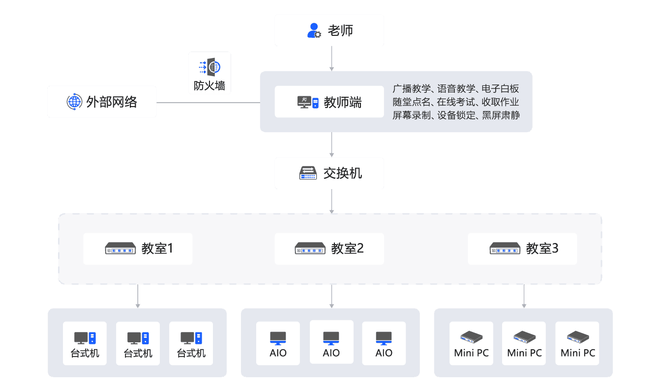 支持多個班級、多個主控端(教師機)同時上課,可進行分組教學。